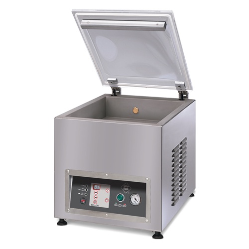 rozmer: 395x465x450mm(šxhxv); príkon elektro: 0,25kW/230V; výkon vákuovej pumpy: 8m3/h; vnútorný rozmer: 320x350x115+60h mm(šxhxv); nastavenie doby vákuovania; nastavenie doby zvárania; programovatelná: 10 programov; digitálne ovládanie; tlakomer; poistka otvorenia veka; dĺžka zváracej lišty 310mm