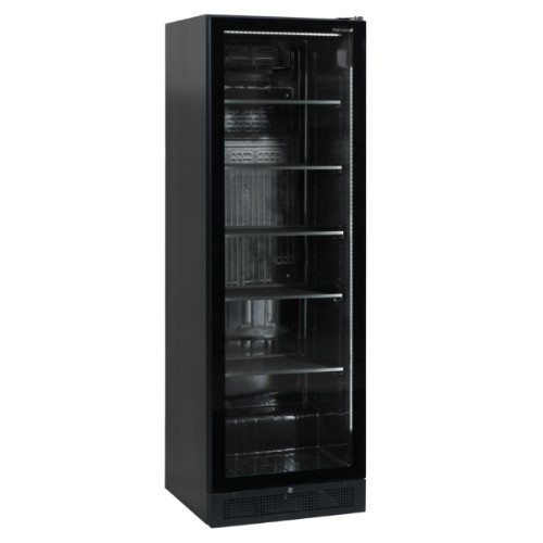 rozmer: 595x595x1990mm(šxhxv); príkon elektro: 0,24kW/230V; objem: 347 l; jednozónová; kapacita – plechovky 330 ml / 441ks, 500 ml / 308 ks; kapacita – fľaše 500 ml / 238 ks ; počet roštov: 5 ks; prevedenie roštov: čierny plech; chladenie: statické s pomocným ventilátorom; vonkajšie prevedenie: čierna; vnútorné prevedenie: čierne; bezrámové presklené dvere; prev. teplota: +2/+10°C; mechanický termostat; max. teplota/vlhkosť okolia +25°C / 60%R.H.; vnútorné osvetlenie LED vertikálne aj horizontálne