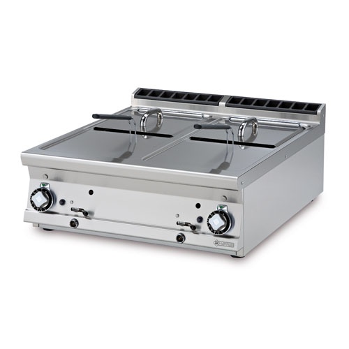 rozmer: 800x900x280mm(šxhxv); príkon plyn: 24kW; počet vaní: 2; objem vane: 13 l; rozmer koša: 280x290x100mm(šxhxv); regulácia teploty: 50-180°C; výpustný ventil; piezo zapaľovanie; hrúbka plechu vrchnej dosky: 2mm; základné príslušenstvo: ; -2 x veko vane; -2 x koš