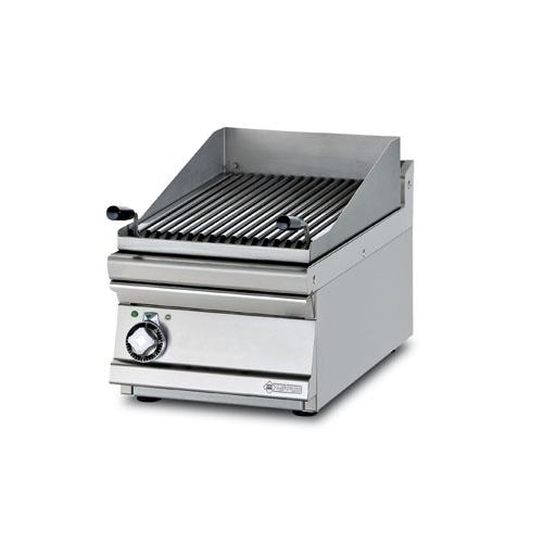 rozmer: 400x700x280mm(šxhxv); príkon elektro: 6,0kW/400V; rozmer roštu: 380x520mm(šxh); počet roštov: 1ks; univerzálny rošt na mäso/ryby; regulácia teploty: 50-300°C; hrúbka plechu vrchnej dosky: 2mm