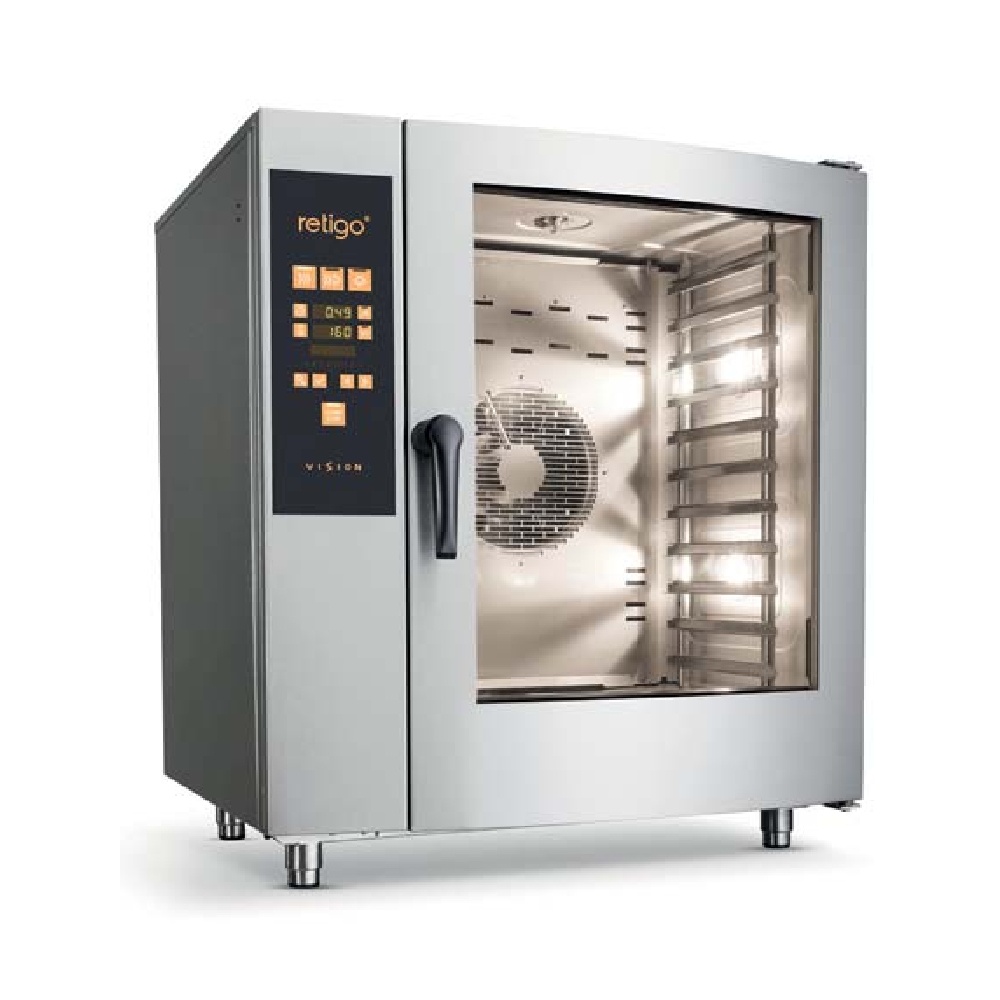 rozmer: 1121x1063x1086mm(šxhxv); príkon elektro: 29,6kW/400V; kapacita: 10 x GN2/1; zásuvy naprieč pre lahšiu manipuláciu; tvorba pary: nástrekom s tepelným výmenníkom ; pre nízku spotrebu vody a el. energie ; TROJITÉ SKLO DVERÍ pre úsporu energie; predohrev vody v tepelnom výmenníku pre úsporu energie; ovládanie: elektronické programovateľné; 99 voliteľných PROGRAMOV po 9 krokoch; MENU V SK jazyku + SLOVENSKÉ KUCH. PROGRAMY; funkcie:; horúci vzduch 30-300°C; kombinovaný režim 30–300°C; varenie v pare 30–130°C; BIO varenie 30–98°C; nízkoteplotné pečenie, nočné pečenie ; regenerácia, manuálne privlhčenie; odložený štart, nekonečný čas varenia; 7 rýchlostí ventilátora, FanStop, autoreverz ventilátora; 5 automatických UMÝVACÍCH CYKLOV + odvápnenie komory; predohrev komory, rýchle schladenie komory; USB pre HACCP výstup a programovanie ; automatická diagnostika chýb a prevádzkových udalostí; príslušenstvo na objednávku:; – teplotná sonda; – ručná sprcha; – el. ovládaná klapka pre odťah prebytočnej pary; – udiaca jednotka