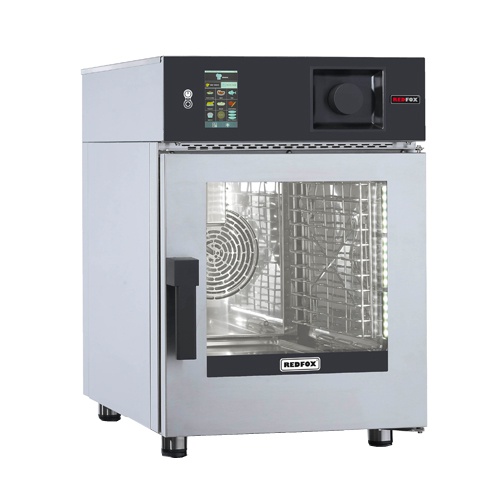 rozmer: 520x630x770mm(šxhxv); príkon elektro: 4,7kW/400V; kapacita: 6 x GN2/3; tvorba pary: nástrekom; ovládanie: elektronické programovateľné; funkcie:; horúci vzduch 50-300°C; kombi cyklus 50-270°C ; naparovanie 50-120°C; 5″ dotykový grafický ovládací displej v CZ jazyku; 1000 uložiteľných programov; 9 prednastavených OneTouch programov na hlavnej obrazovke; teplotná pokrmová sonda /6000124; USB port pre HACCP výstup / alarm monitoring; delta T systém, Cook&Hold program udžiavania; manuálne privlhčenie, nízkoteplotné pečenie; program časovania zásuvov MultiLevelCooking a EasyService; nastavenie času, teploty a privlhčenia v percentách; vnútorné osvetlenie, manuálne privlhčenie ; 4 automatické umývacie programy; 3 rýchlosti ventilátora, autoreverz ventilátora; elektronické ovládanie odvetrávacej klapky; predohrev komory, rýchle schladenie komory; príslušenstvo na objednávku:; -ručná externá sprcha; -udiaca jednotka