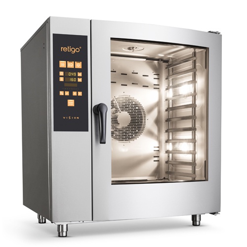 rozmer: 933x821x1046mm(šxhxv); príkon plyn: 22,5kW; príkon elektro: 0,74kW/230V; kapacita: 11 x GN1/1; zásuvy naprieč pre lahšiu manipuláciu; tvorba pary: nástrekom s tepelným výmenníkom ; pre nízku spotrebu vody a el. energie ; TROJITÉ SKLO DVERÍ pre úsporu energie; ovládanie: elektronické programovateľné; 99 voliteľných PROGRAMOV po 9 krokoch; dotykový 7“ displej s piktogramami ; MENU V SK jazyku + SLOVENSKÉ KUCH. PROGRAMY; funkcie:; horúci vzduch 30-300°C; kombinovaný režim 30–300°C; varenie v pare 30–130°C; BIO varenie 30–98°C; nízkoteplotné pečenie, nočné pečenie ; regenerácia, manuálne privlhčenie; odložený štart, nekonečný čas varenia; 7 rýchlostí ventilátora, FanStop, autoreverz ventilátora; 5 automatických UMÝVACÍCH CYKLOV + odvápnenie komory; predohrev komory, rýchle schladenie komory; USB pre HACCP výstup a programovanie ; automatická diagnostika chýb a prevádzkových udalostí; príslušenstvo na objednávku:; – teplotná sonda; – ručná sprcha; – el. ovládaná klapka pre odťah prebytočnej pary; – udiaca jednotka