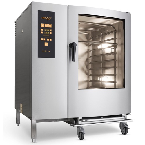 rozmer: 1111x1006x1343mm(šxhxv); príkon plyn: 45kW; príkon elektro: 1,28kW/230V; kapacita: 12 x GN2/1 alebo 24 x GN1/1; zásuvy naprieč pre lahšiu manipuláciu; tvorba pary: nástrekom s tepelným výmenníkom ; pre nízku spotrebu vody a el. energie ; TROJITÉ SKLO DVERÍ pre úsporu energie; ovládanie: elektronické programovateľné; 99 voliteľných PROGRAMOV po 9 krokoch; MENU V SK jazyku + SLOVENSKÉ KUCH. PROGRAMY; funkcie:; horúci vzduch 30-300°C; kombinovaný režim 30–300°C; varenie v pare 30–130°C; BIO varenie 30–98°C; nízkoteplotné pečenie, nočné pečenie ; regenerácia, manuálne privlhčenie; odložený štart, nekonečný čas varenia; 7 rýchlostí ventilátora, FanStop, autoreverz ventilátora; 5 automatických UMÝVACÍCH CYKLOV + odvápnenie komory; predohrev komory, rýchle schladenie komory; USB pre HACCP výstup a programovanie ; automatická diagnostika chýb a prevádzkových udalostí; zavážacia konštrukcia a vozík v cene; príslušenstvo na objednávku:; – teplotná sonda; – ručná sprcha; – el. ovládaná klapka pre odťah prebytočnej pary; – udiaca jednotka