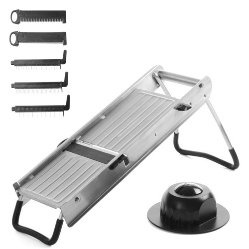 rozmer : 45x12cm; základné príslušenstvo : 5 nožov; nôž na plátky; nôž na vlnky; slížikovače: 4; 6; 10mm