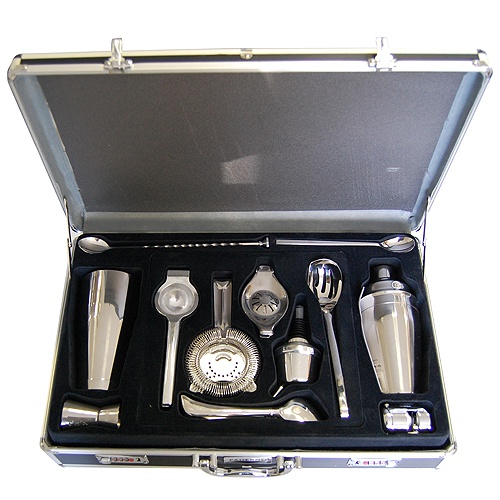 20 dielna sada, obsah :; shaker 0,75l; shaker boston; 3 x lis citrusových plodov; sitko barové; odmerka nerezová; kliešte na ľad 23cm; 4 x lyžička; uzáver na fľašu; dávkovač na fľašu; barmanský nôž; 2 x orezávač kôry citrusov; otvárač kork.uzáverov; otvárač čašnícky; palička