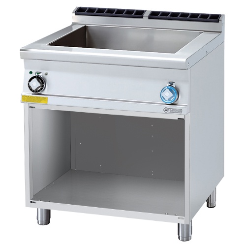 rozmer: 800x700x900mm(šxhxv); príkon elektro: 4,2kW/400V; kapacita: 2 x GN1/1 – 150mm; regulácia teploty: 30-90°C ; napúšťanie vody elektroventilom; vaňa s odpadom a prepadom; na otvorenej podstavbe; hrúbka plechu vrchnej dosky: 2mm; príslušenstvo na objednávku: ; -dvere