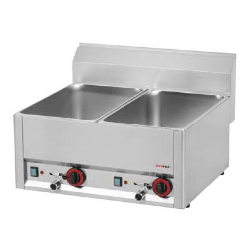 rozmer: 660x600x290mm(šxhxv); príkon elektro: 3kW/230V; rozmer vane: 2 x GN1/1 – 150mm; regulácia teploty: 30-90°C; výpustný ventil; príslušenstvo na objednávku:; -gastronádoby