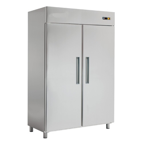 rozmer: 1388x852x2008mm(šxhxv); príkon elektro: 1,76kW/230V; objem: 1400 l; chladenie: ventilované; dvere: plné; vonkajšie prevedenie: nerezová; vnútorné prevedenie: nerezová; prev. teplota: -18/-20°C; elektronická riadiaca jednotka; zámok; max. teplota/vlhkosť okolia +25°C / 60%R.H.; základné príslušenstvo:; – 6 x rošt GN2/1