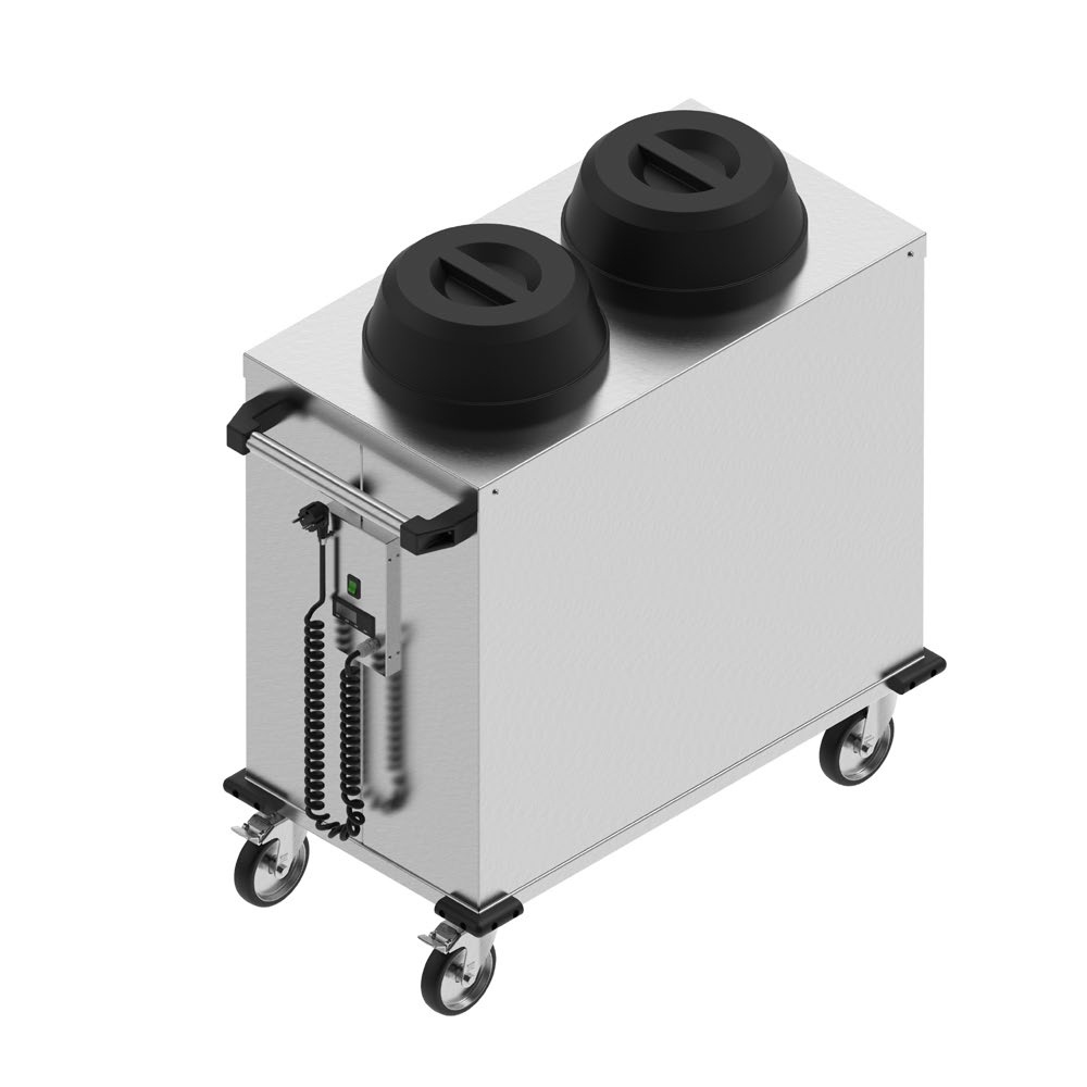 rozmer: 480x870x900mm(šxhxv); príkon elektro: 0,7kW/230V; kapacita: 2 x 50 tanierov; regulácia teploty: 30-90°C; vedenie pre priemer tanierov 185-280mm; kryt tanierov; automatické vysúvanie tanierov; 4 kolieska, 2 brzdené
