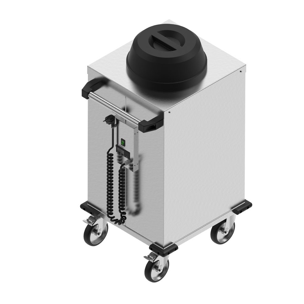 rozmer: 480x500x900mm(šxhxv); príkon elektro: 0,7kW/230V; kapacita: 1 x 50 tanierov; regulácia teploty: 30-90°C; vedenie pre priemer tanierov 185-280mm; kryt tanierov; automatické vysúvanie tanierov; 4 kolieska, 2 brzdené