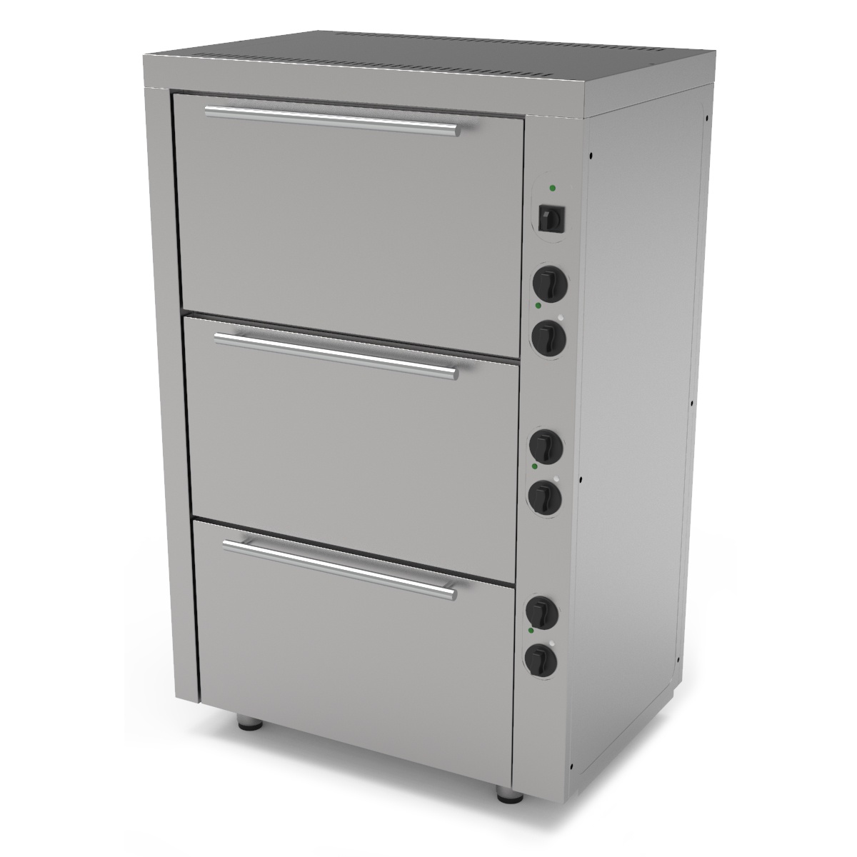 rozmer: 1050x750x1650mm(šxhxv); príkon elektro: 15kW/400V; počet rúr: 3; príkon rúry: 5kW/400V; vnútorný rozmer: 660x545x330mm(šxhxv) / GN2/1; komora: nerezová; regulácia teploty: ; 50-300°C každé teleso samostatne; prevedenie rúry: statická; základné príslušenstvo: 3 x rošt; príslušenstvo na objednávku: ; -4004,17 GNS2/1 – 65mm smalt /E; -4000,03 GN2/1 – 65mm ; -4004,84 rošt GN2/1