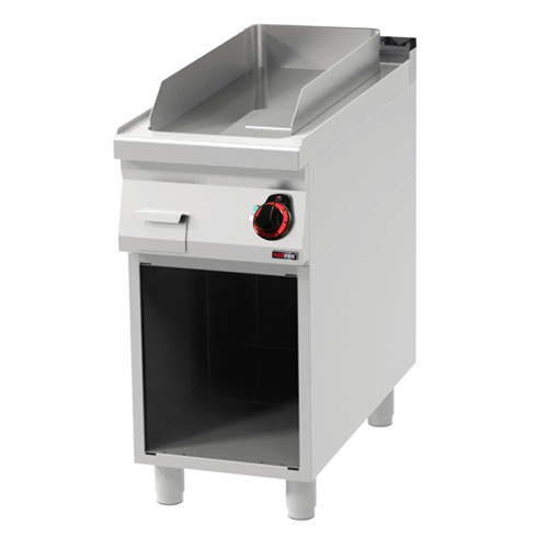 rozmer: 400x900x900mm(šxhxv); príkon elektro: 6kW/400V; rozmer platne: 310x650mm(šxh); platňa: hladká; prevedenie: teplovodivá oceľ; regulácia teploty: 50-300°C; na otvorenej podstavbe; zásuvka na odkvapkávajúci tuk; príslušenstvo na objednávku: ; -dvere