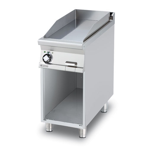rozmer: 400x900x900mm(šxhxv); príkon elektro: 7,5kW/400V; rozmer platne: 360x680mm(šxh); platňa: hladká; prevedenie: teplovodivá oceľ; regulácia teploty: 50-300°C; na otvorenej podstavbe; zásuvka na odkvapkávajúci tuk; hrúbka plechu vrchnej dosky: 2mm; príslušenstvo na objednávku: ; -dvere