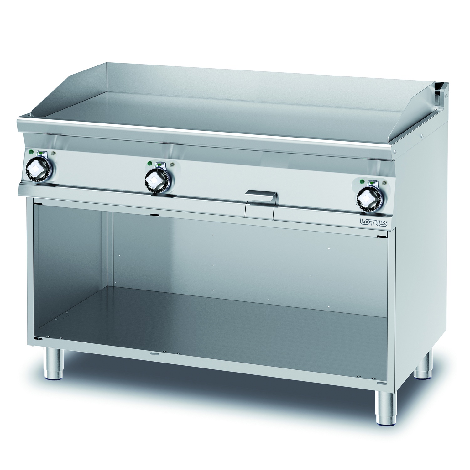 rozmer: 1200x700x900mm(šxhxv); príkon elektro: 16,65kW/400V; rozmer platne: 1160x510mm(šxh); platňa: hladká; prevedenie: leštený chróm; regulácia teploty: 50-300°C; 3 smažiace zóny; na otvorenej podstavbe; zásuvka na odkvapkávajúci tuk; hrúbka plechu vrchnej dosky: 2mm; príslušenstvo na objednávku: ; -dvere