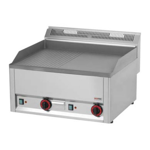 rozmer: 660x600x290mm(šxhxv); príkon elektro: 6kW/400V; rozmer platne: 650x480mm(šxh); platňa: 1/2hladká + 1/2ryhovaná; prevedenie: teplovodivá oceľ; regulácia teploty: 50-300°C; zásuvka na odkvapkávajúci tuk