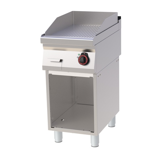 rozmer: 400x700x900mm(šxhxv); príkon elektro: 4,5kW/400V; rozmer platne: 396x510mm(šxh); platňa: ryhovaná; prevedenie: teplovodivá oceľ; regulácia teploty: 50-360°C; na otvorenej podstavbe; zásuvka na odkvapkávajúci tuk; príslušenstvo na objednávku: ; -dvere