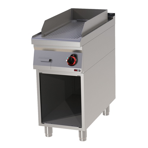 rozmer: 400x900x900mm(šxhxv); príkon elektro: 6kW/400V; rozmer platne: 310x650mm(šxh); platňa: ryhovaná; prevedenie: teplovodivá oceľ; regulácia teploty: 50-300°C; na otvorenej podstavbe; zásuvka na odkvapkávajúci tuk; príslušenstvo na objednávku: ; -dvere