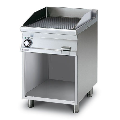 rozmer: 600x700x900mm(šxhxv); príkon elektro: 7,4kW/400V; rozmer platne: 590x520mm(šxh); platňa: ryhovaná; prevedenie: teplovodivá oceľ; regulácia teploty: 50-300°C; na otvorenej podstavbe; zásuvka na odkvapkávajúci tuk; hrúbka plechu vrchnej dosky: 2mm; príslušenstvo na objednávku: ; -dvere