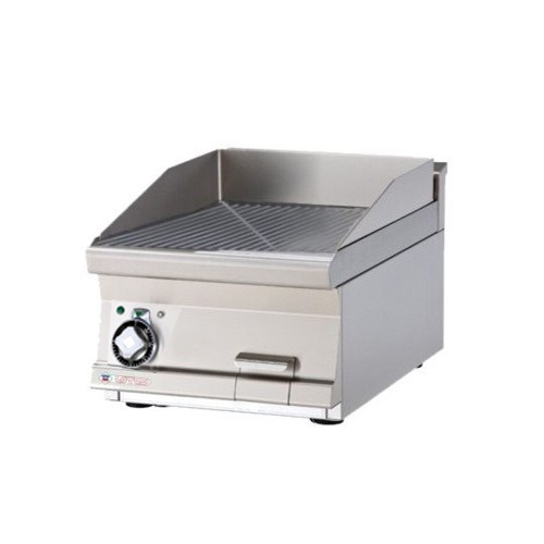 rozmer: 400x600x280mm(šxhxv); príkon elektro: 4,5kW/400V; rozmer platne: 395x450mm(šxh); platňa: ryhovaná; prevedenie: teplovodivá oceľ; regulácia teploty: 50-300°C; zásuvka na odkvapkávajúci tuk
