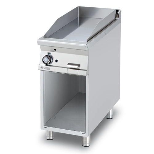 rozmer: 400x900x900mm(šxhxv); príkon plyn: 9kW; rozmer platne: 360x680mm(šxh); platňa: hladká; prevedenie: teplovodivá oceľ; regulácia teploty: 50-300°C; na otvorenej podstavbe; zásuvka na odkvapkávajúci tuk; piezo zapaľovanie; hrúbka plechu vrchnej dosky: 2mm; príslušenstvo na objednávku: ; -dvere