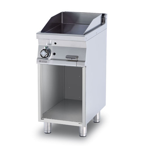 rozmer: 400x700x900mm(šxhxv); príkon plyn: 7kW; rozmer platne: 390x520mm(šxh); platňa: hladká; prevedenie: brúsený chróm; regulácia teploty: 50-300°C; na otvorenej podstavbe; zásuvka na odkvapkávajúci tuk; piezo zapaľovanie; hrúbka plechu vrchnej dosky: 2mm; príslušenstvo na objednávku: ; -dvere