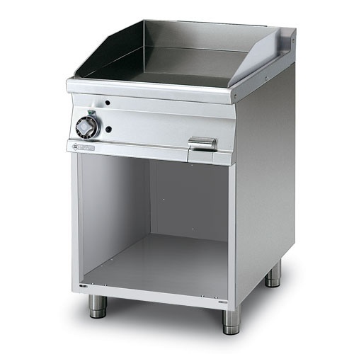 rozmer: 600x700x900mm(šxhxv); príkon plyn: 10,5kW; rozmer platne: 590x520mm(šxh); platňa: hladká; prevedenie: brúsený chróm; regulácia teploty: 50-300°C; na otvorenej podstavbe; zásuvka na odkvapkávajúci tuk; piezo zapaľovanie; hrúbka plechu vrchnej dosky: 2mm; príslušenstvo na objednávku: ; -dvere