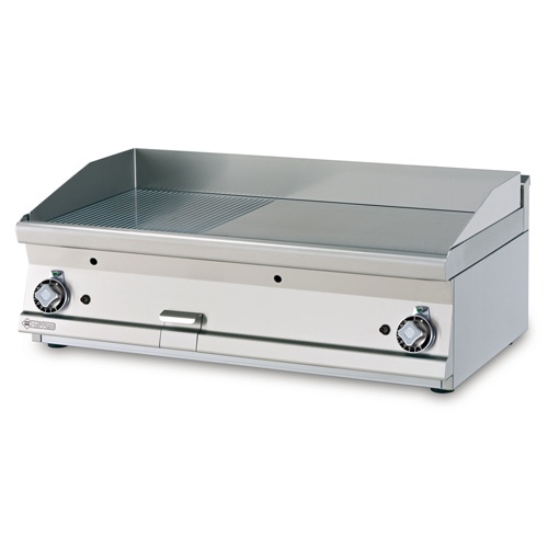 rozmer: 1000x600x280mm(šxhxv); príkon plyn: 15kW; rozmer platne: 990x450mm(šxh); platňa: 3/5hladká + 2/5 ryhovaná; prevedenie: teplovodivá oceľ; regulácia teploty: 50-300°C; zásuvka na odkvapkávajúci tuk; piezo zapaľovanie