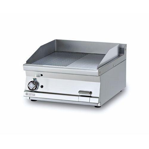 rozmer: 600x700x280mm(šxhxv); príkon plyn: 10,5kW; rozmer platne: 590x520mm(šxh); platňa: 1/2hladká + 1/2ryhovaná; prevedenie: teplovodivá oceľ; regulácia teploty: 50-300°C; zásuvka na odkvapkávajúci tuk; piezo zapaľovanie; hrúbka plechu vrchnej dosky: 2mm