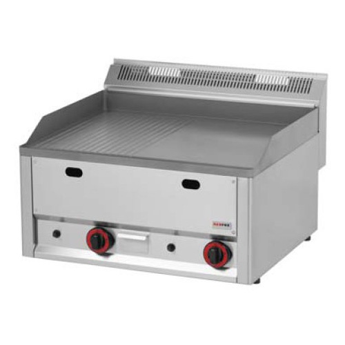 rozmer: 660x600x290mm(šxhxv); príkon plyn: 8kW; rozmer platne: 650x480mm(šxh); platňa: 1/2hladká + 1/2ryhovaná; prevedenie: teplovodivá oceľ; regulácia teploty: 50-300°C; zásuvka na odkvapkávajúci tuk; piezo zapaľovanie