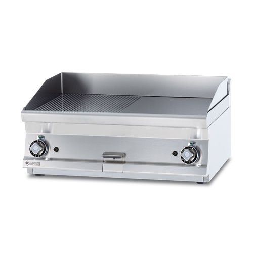 rozmer: 800x600x280mm(šxhxv); príkon plyn: 12kW; rozmer platne: 790x450mm(šxh); platňa: 1/2hladká + 1/2ryhovaná; prevedenie: teplovodivá oceľ; regulácia teploty: 50-300°C; zásuvka na odkvapkávajúci tuk; piezo zapaľovanie