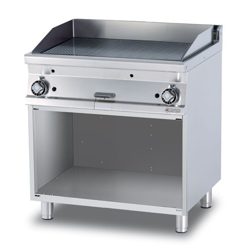 rozmer: 800x700x900mm(šxhxv); príkon plyn: 14kW; rozmer platne: 790x520mm(šxh); platňa: ryhovaná; prevedenie: teplovodivá oceľ; regulácia teploty: 50-300°C; na otvorenej podstavbe; zásuvka na odkvapkávajúci tuk; piezo zapaľovanie; hrúbka plechu vrchnej dosky: 2mm; príslušenstvo na objednávku: ; -dvere