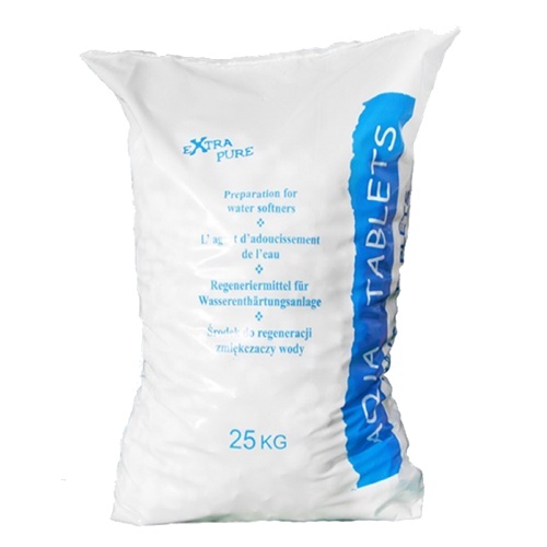 vhodná na regeneráciu automatických katexových zmäkčovačov; pitnej a úžitkovej vody; NaCl chlorid sodný – kuchynská soľ; balenie 25 kg; paleta = 40 ks