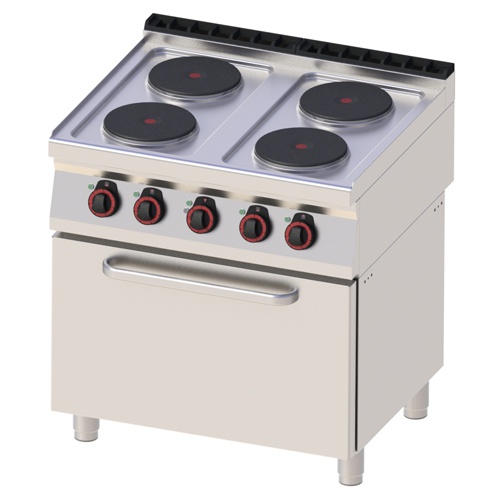 rozmer: 800x700x900mm(šxhxv); príkon elektro: 16,7kW/400V; elektrický príkon platní: 4×2,6kW; počet platní: 4ks; elektrický príkon rúry: 6,3kW; vnútorný rozmer rúry: 680x550x300mm(šxhxv)/GN2/1; regulácia teploty rúry: 50-300°C; prevedenie rúry: statická; základné príslušenstvo:; -rošt rúry GN2/1