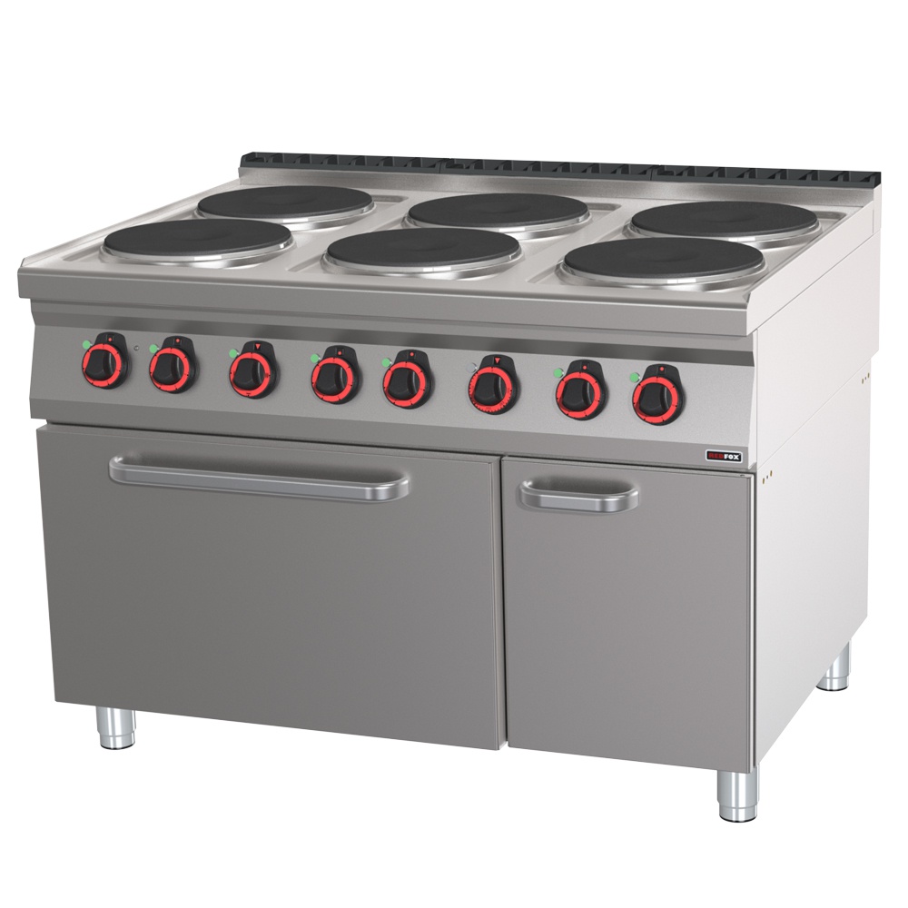 rozmer: 1200x900x900mm(šxhxv); príkon elektro: 27,3kW/400V; elektrický príkon platní: 6×3,5kW; počet platní: 6ks; priemer platne: 310mm; elektrický príkon rúry: 6,3kW; vnútorný rozmer rúry: 685x730x340mm(šxhxv)/GN2/1; regulácia teploty rúry: 50-300°C; prevedenie rúry: statická; základné príslušenstvo: ; -rošt rúry GN2/1