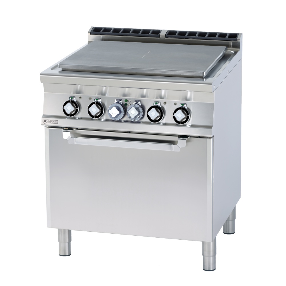 rozmer: 800x700x900mm(šxhxv); príkon elektro: 15kW/400V; elektrický príkon tálu: 10kW/400V; počet varných zón: 4ks; rozmer tálu: 770x570mm(šxhxv); elektrický príkon rúry: 5kW/400V; vnútorný rozmer rúry: 680x550x340mm(šxhxv)/GN2/1; regulácia teploty rúry: 50-300°C; prevedenie rúry: statická; hrúbka plechu vrchnej dosky: 2mm; základné príslušenstvo: ; -rošt rúry GN2/1