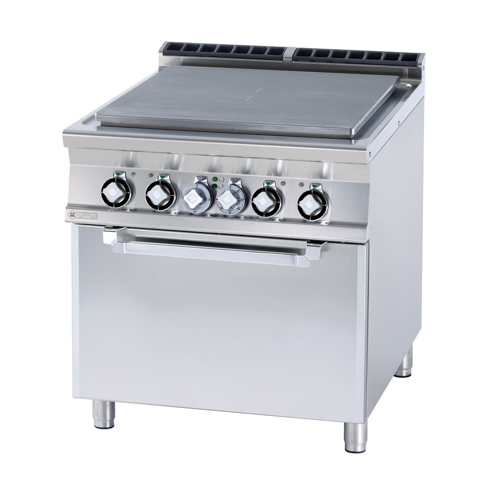 rozmer: 800x900x900mm(šxhxv); príkon elektro: 20,3 kW/400V; elektrický príkon tálu: 13,6kW; počet varných zón: 4ks; rozmer tálu: 700x680mm(šxh); elektrický príkon rúry: 6,7kW; vnútorný rozmer rúry: 670x730x340mm(šxhxv)/GN2/1; regulácia teploty rúry: 50-300°C; prevedenie rúry: statická; hrúbka plechu vrchnej dosky: 2mm; základné príslušenstvo:; -rošt rúry GN2/1