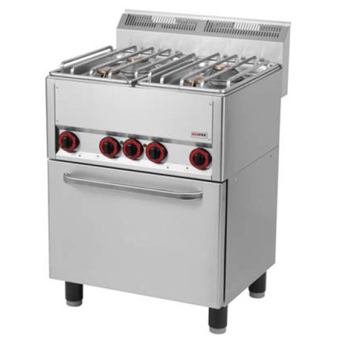 rozmer: 660x600x860mm(šxhxv); príkon plyn: 18kW; príkon elektro: 3,13kW/230V; plynový príkon horákov: 4×4,5kW; počet horákov: 4ks; elektrický príkon rúry: 3,13kW; vnútorný rozmer rúry: 545x380x340mm(šxhxv)/ GN1/1; regulácia teploty rúry: 50-300°C; prevedenie rúry: multifunkčná konvekčná; nerezové rošty horákov; základné príslušenstvo: ; -rošt rúry GN1/1