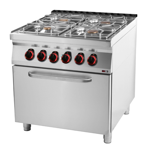 rozmer: 800x900x900mm(šxhxv); príkon plyn: 24,5kW; príkon elektro : 6,3kW/400V; plynový príkon horákov: 1×3,5kW + 1x5kW + 2x8kW; počet horákov: 4ks; elektrický príkon rúry: 6kW; vnútorný rozmer rúry: 558x682x348mm(šxhxv)/GN2/1; regulácia teploty rúry: 50-300°C; prevedenie rúry: statická; zapaľovanie pilotným plameňom; nerezové rošty horákov; základné príslušenstvo: ; -rošt rúry GN2/1