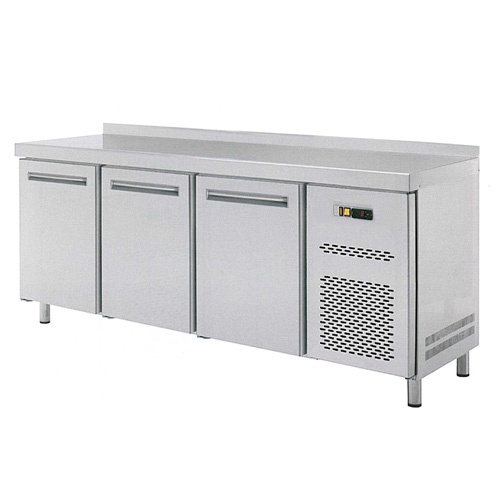 rozmer: 1792x700x850mm(šxhxv); príkon elektro: 0,4kW/230V; pre uloženie GN1/1; 3 x dvere; chladenie: ventilované; chladiaci agregát vpravo; prev. teplota: 0/+8°C; pracovná doska s lemom; elektronická riadiaca jednotka; základné príslušenstvo: 3 x rošt; príslušenstvo na objednávku: ; -zásuvkový set RT-Z2 (2 x zásuvka)