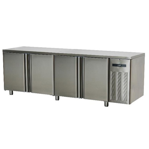 rozmer: 2380x700x900mm(šxhxv); príkon elektro: 0,425kW/230V; pre uloženie GN1/1; 4 x dvere; chladenie: ventilované; chladiaci agregát vpravo; prev. teplota: -2/+8°C; pracovná doska s lemom; elektronická riadiaca jednotka; max. TEPLOTA OKOLIA do: +43°C; energetická trieda: C; IZOLÁCIA: 70mm; elektronické RIADENIE VLHKOSTI; základné príslušenstvo: 4 x rošt; príslušenstvo na objednávku: ; -zásuvkový set ZS1212 (2 x zásuvka s hĺbkou 200mm); -zásuvkový set ZS131313 (3 x zásuvka s hĺbkou 100mm); -horná doska bez lemu; -granitová doska bez lemu; -agregát vľavo; -zámok