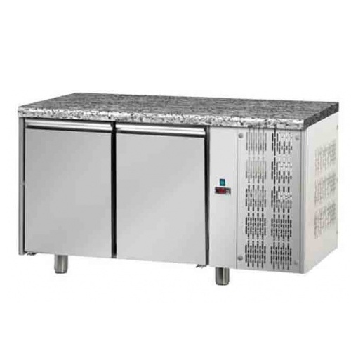rozmer: 1600x800x850mm(šxhxv); príkon elektro: 0,45kW/230V; pre uloženie plechov 60×40 cm; 2 x dvere; chladenie: ventilované; chladiaci agregát vpravo; prev. teplota: +2/+10°C; granitová pracovná doska bez lemu; elektronická riadiaca jednotka; max. teplota okolia do: +30°C; izolácia: 40mm; základné príslušenstvo: ; -5 párov L zásuvov pre každé dvere; príslušenstvo na objednávku: ; -plastový box 60×40 cm; -agregát vľavo; -zámok dverí