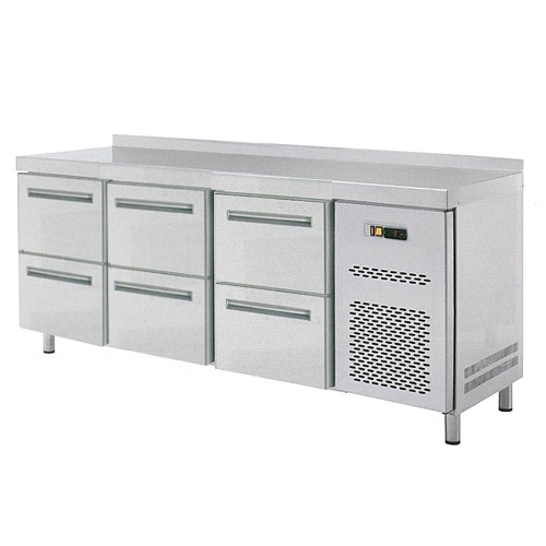rozmer: 1792x700x850mm(šxhxv); príkon elektro: 0,4kW/230V; pre uloženie GN1/1; 3 x zásuvkový set RT-Z2 (6 x zásuvka); chladenie: ventilované; chladiaci agregát vpravo; prev. teplota: 0/+8°C; pracovná doska s lemom; elektronická riadiaca jednotka