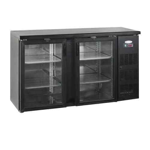 rozmer: 1462x513x860mm(šxhxv); príkon elektro: 0,25kW/230V; objem brutto 290 l; 2 x dvierka presklené; chladenie: ventilované; chladiaci agregát vpravo; prev. teplota: +2/+10°C; elektronická riadiaca jednotka; automatické odmrazovanie; vnútorné LED osvetlenie; zámok dverí; základné príslušenstvo: 4 x polica