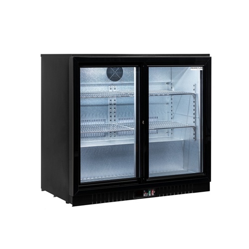 rozmer: 900x550x875mm(šxhxv); príkon elektro: 0,18kW/230V; objem brutto: 197 l; 2 x dvierka presklené posuvné; chladenie: ventilované; chladiaci agregát vzadu; prev. teplota: +1/+10°C; elektronická riadiaca jednotka; automatické odmrazovanie; vnútorné LED osvetlenie; zámok dverí; základné príslušenstvo: 4 x polica