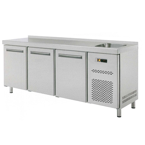 rozmer: 1792x700x850mm(šxhxv); príkon elektro: 0,4kW/230V; pre uloženie GN1/1; 3 x dvere; 1 x drez; chladenie: ventilované; chladiaci agregát vpravo; prev. teplota: 0/+8°C; pracovná doska s lemom; pracovná doska s otvorom na batériu; elektronická riadiaca jednotka; základné príslušenstvo: 3 x rošt; drez 305x335x200mm nad agregátom; príslušenstvo na objednávku: ; -zásuvkový set RT-Z2 (2 x zásuvka)