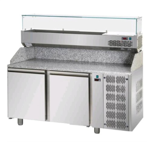 rozmer: 1610x800x1510mm(šxhxv); príkon elektro: 0,5kW/230V; 2 x dvere; pre uloženie 60x40cm; chladenie: ventilované; chladiaci agregát vpravo; prev. teplota: 0/+10°C; granitová pracovná doska; elektronická riadiaca jednotka; základné príslušenstvo: 2 x zásuv; príslušenstvo na objednávku: ; plastový box 60x40cm; ; Chladiaca vitrína; príkon elektro: 0,36kW; kapacita: 6 x GN1/3 – 150mm; chladenie: statické; chladiaci agregát vpravo; prev. teplota: 0/+10°C; elektronická riadiaca jednotka; sklenený zákryt; príslušenstvo na objednávku:; -gastronádoby