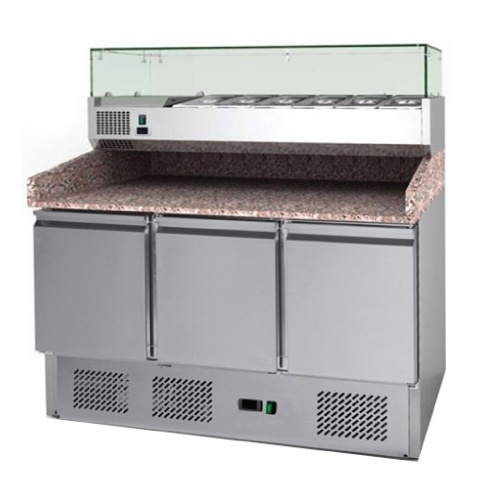 Stôl pizza, 3 x dvere, s chl. vitrínkou 6xGN1/4