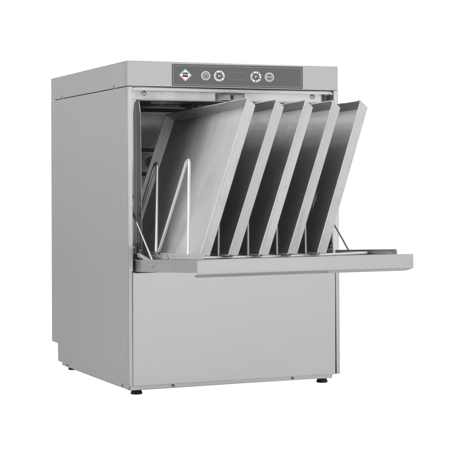 rozmer: 600x700x850mm(šxhxv); príkon elektro: 9,8kW/400V; kapacita: 30/15/10/8/6 košov/h; cyklus: 120“,240“,360“,480“,600“; maximálna vstupná výška: 405mm; vnútorný rozmer komory: 500x600x405mm(šxhxv); prevedenie: dvojplášťová; spotreba vody: 2,4-5 l/cyklus; bojler: tlakový; elektronické ovládanie; samočistiaci program; 3 ďalšie špecifické programy; autodiagnostický systém detekcie závad; rotačné horné a dolné umývacie a oplachové ramená; softštart pre plynulý nábeh tlaku vody z umývacích ramien; termostop pre zaručenú teplotu oplachu podĺa HACCP; softštart pre plynulý nábeh tlaku vody z umývacích ramien; účinný filtračný systém; základné príslušenstvo: ; -nerez koš 500x600mm(šxh); -dávkovač umývacieho prostriedku; -dávkovač oplachového prostriedku; -umývací prostriedok 12kg; -oplachový prostriedok 10kg; príslušenstvo na objednávku: ; -držiak na plechy; -nerez rošt 500x600mm