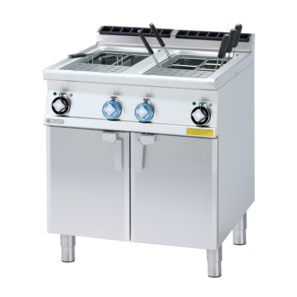 rozmer: 800x700x900mm(šxhxv); príkon elektro: 15,6kW/400V; počet vaní: 2ks; objem vane: 25 l; rozmer vane: 2 x 305x335x300mm(šxhxv); regulácia teploty: 30-100°C; výpustný ventil; na podstavbe s dverami; koše nie sú v cene zariadenia; hrúbka plechu vrchnej dosky: 2mm; príslušenstvo na odjednávku: ; -koše
